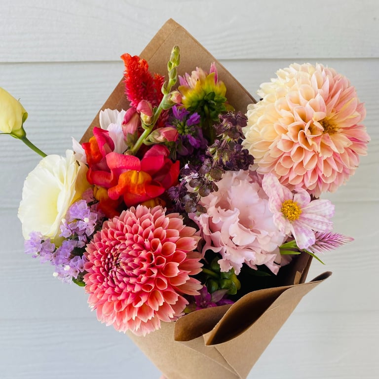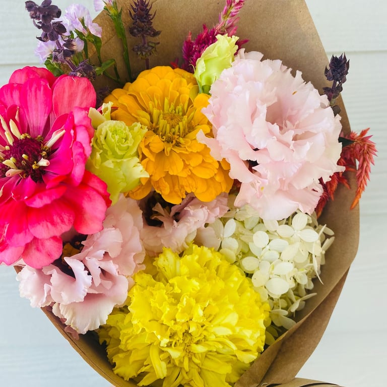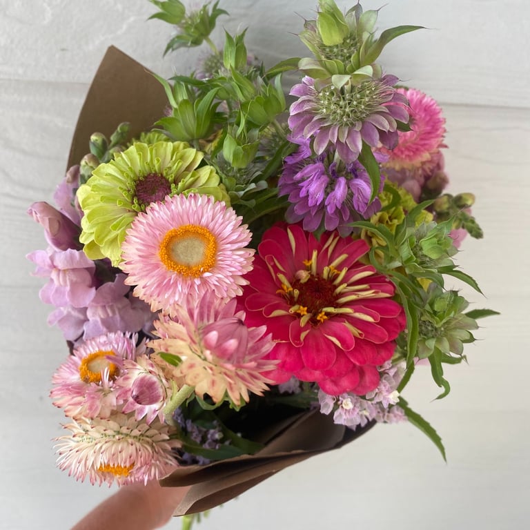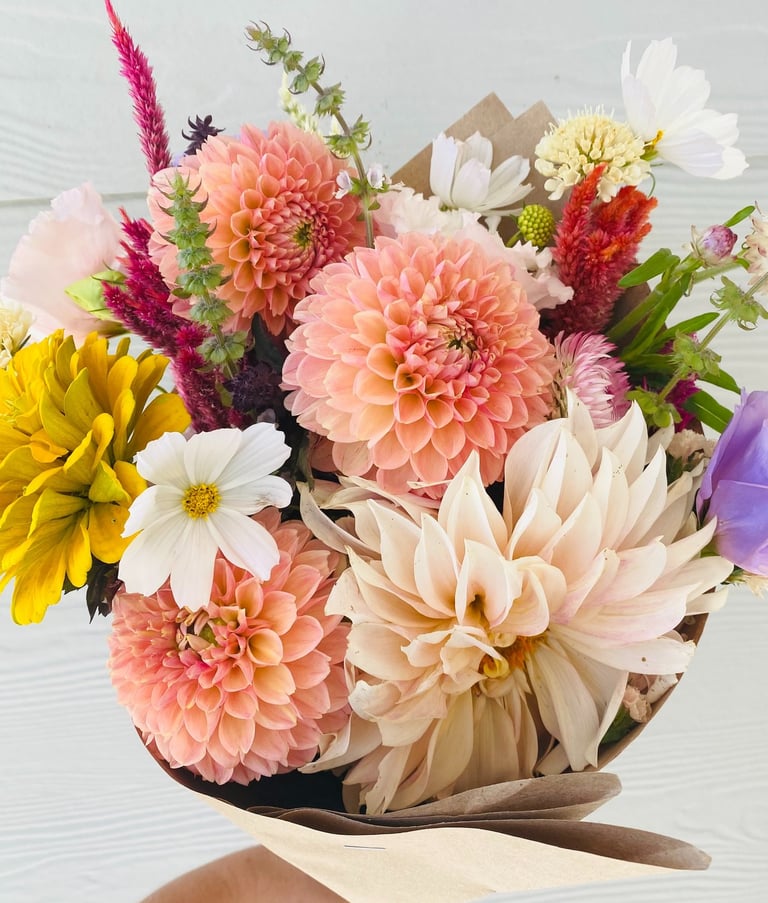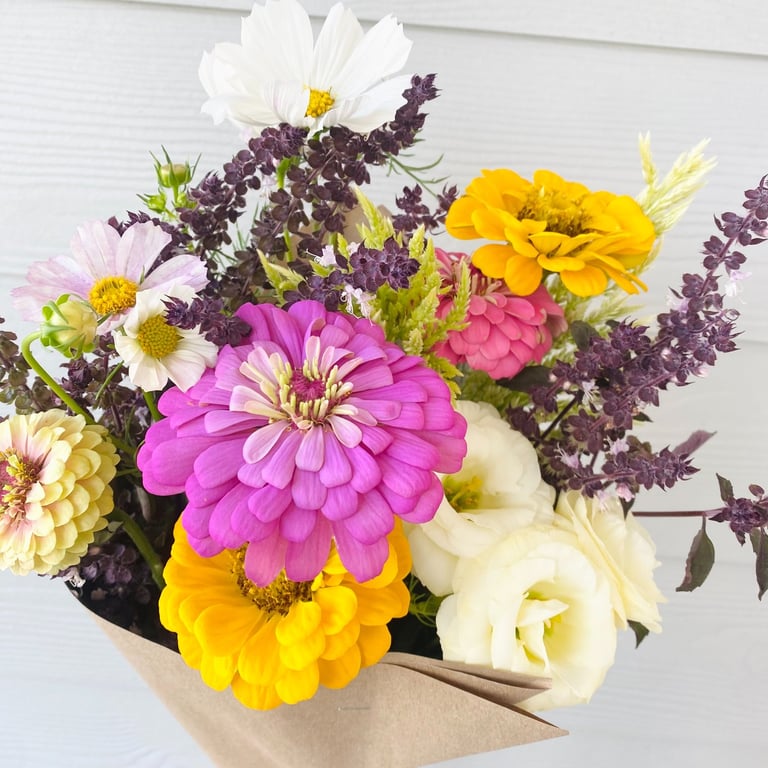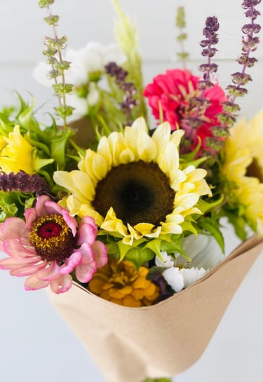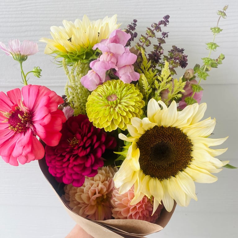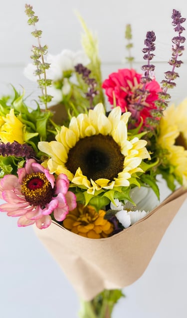 Imagine walking into a room filled with colorful and fragrant flowers, elevating your space with brightness and joy. These hand cut bouquets are made with the best flowers our farm has to offer, bringing nature's beauty into your home and ensuring that every week feels like a special occasion.
